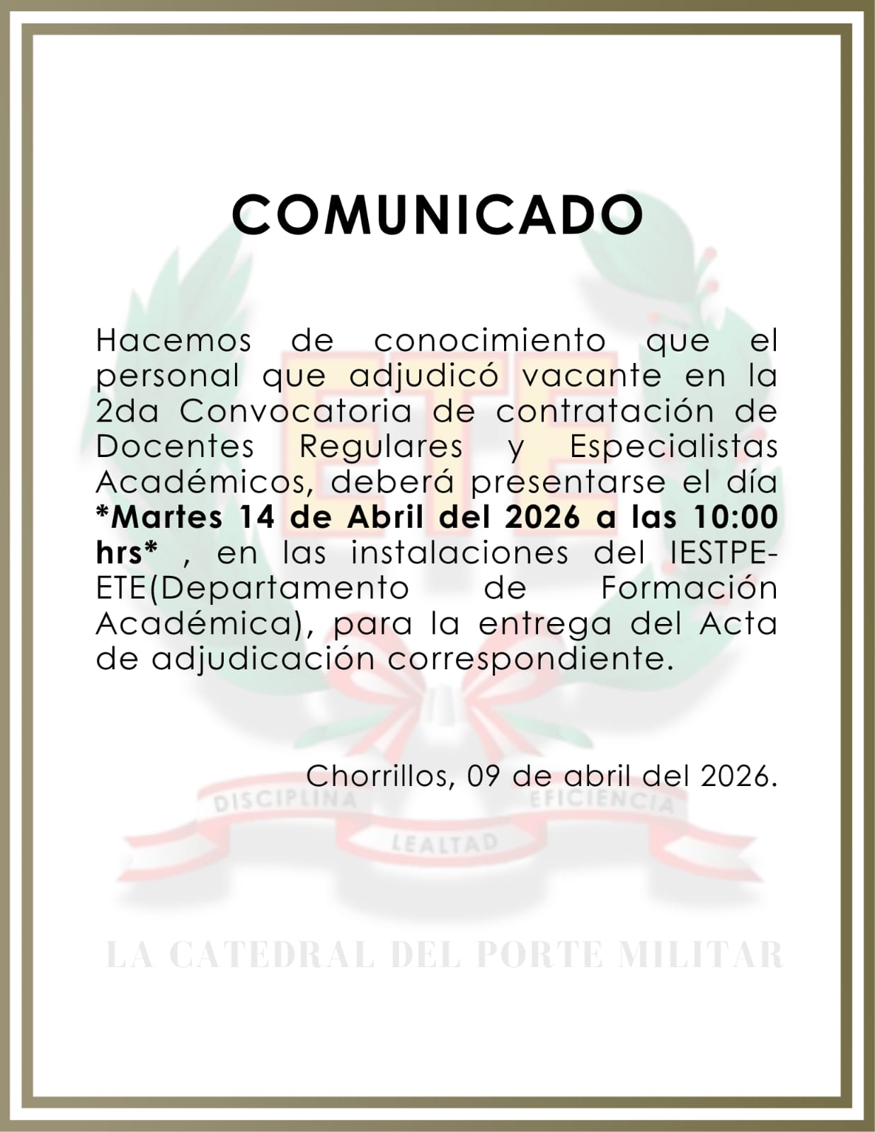 RECONOCIMIENTO DEL GENERAL DE BRIGADA DIRECTOR DE LA ETE