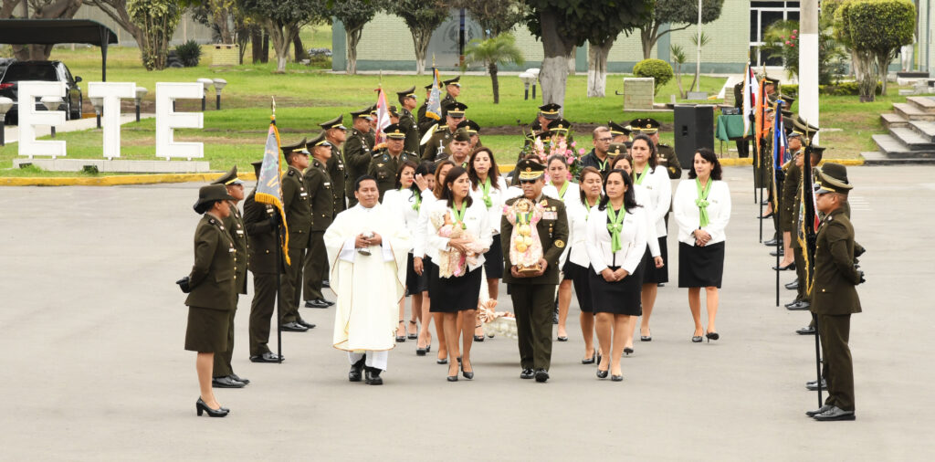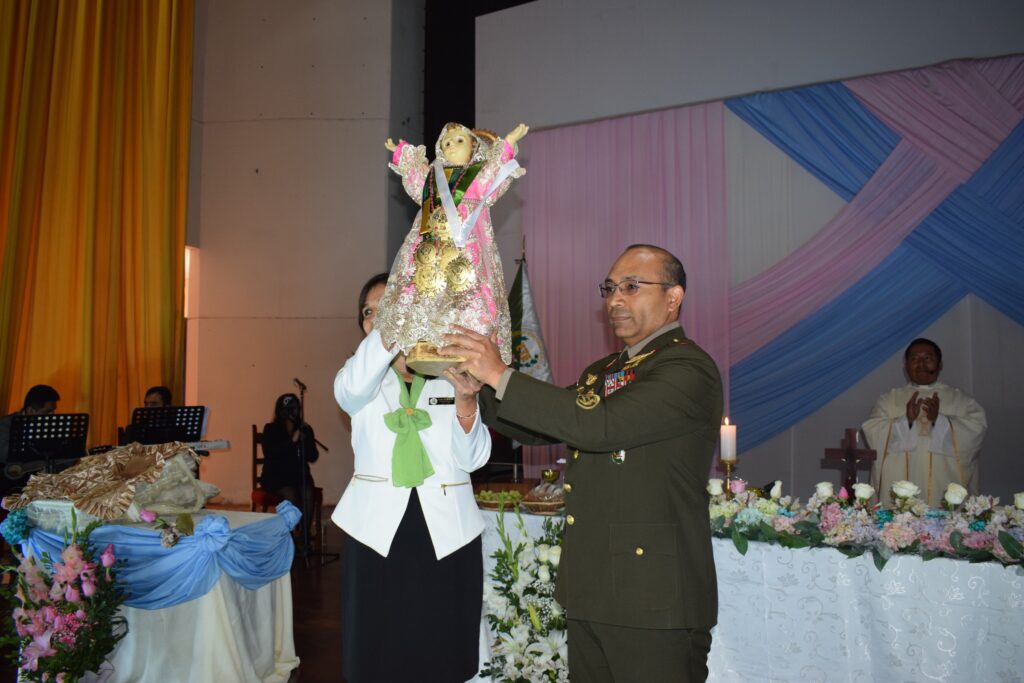 La Escuela Técnica del Ejército «Sgto 2do Fernando Lores Tenazoa» recibió y homenajeo al Divino Niño Jesús, quien llegó acompañado de las representantes de la Asociación de Damas Voluntarias del Ejército.