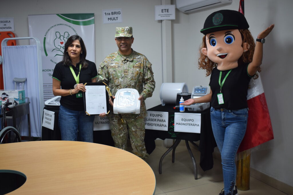 La Escuela Técnica del Ejército “Sgto. 2do Fernando Lores Tenazoa” recibió una donación de equipos y material médico por parte de la Asociación de Damas Voluntarias del Ejército del Perú, con el propósito de fortalecer el Servicio de Fisioterapia y Rehabilitación de esta magna casa de estudios.