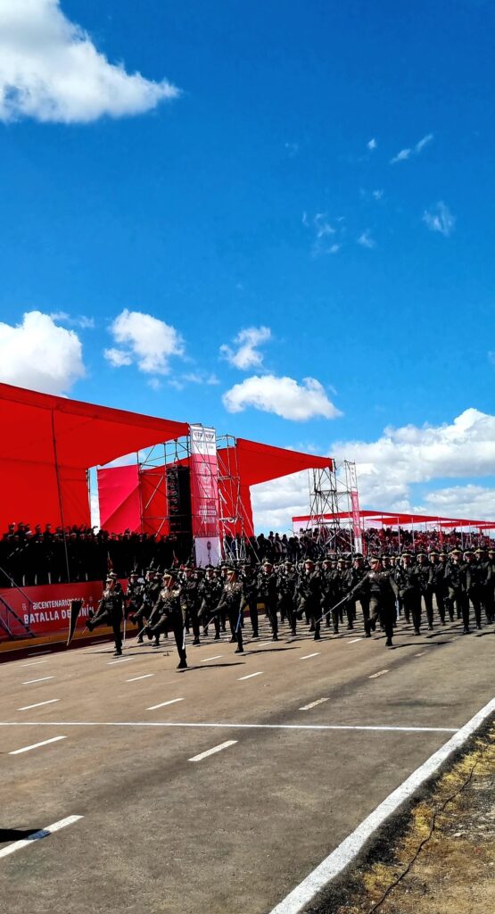 La Escuela Técnica del Ejército «Sgto. 2° Fernando Lores Tenazoa», en el marco de la conmemoración del Bicentenario de la Independencia del Perú, se llevó a cabo una emotiva ceremonia en el Santuario Histórico de Chacamarca, al pie del Monumento a los Vencedores de Junín.