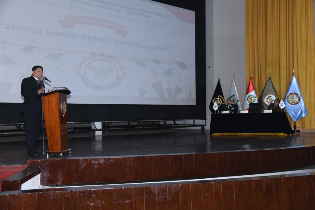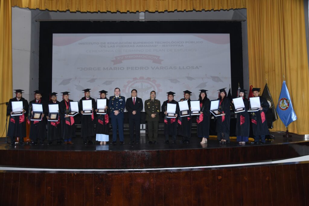 La Escuela Técnica del Ejército «Sgto 2do Fernando Lores Tenazoa» fue sede de una emotiva ceremonia realizada en el auditorio de esta magna casa de estudios donde 165 licenciados de las Fuerzas Armadas egresaron como profesionales técnicos del Instituto de Educación Superior Tecnológico Público de las Fuerzas Armadas (IESTPFFAA), conformando la XV promoción “Dr. Jorge Mario Pedro Vargas Llosa”. Los egresados, provenientes del Ejército, la Marina y la Fuerza Aérea, culminaron sus estudios en doce carreras técnicas.
