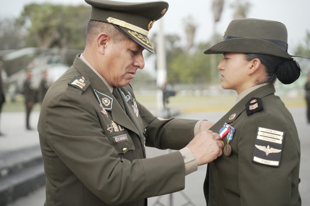La alumna AL3 T/AVI Merly Yarali Gavidia Villalobos recibió estímulos otorgados por agregadurías militares de Alemania, España, Rusia, Uruguay, Brasil y Chile, reconociendo su notable desempeño.