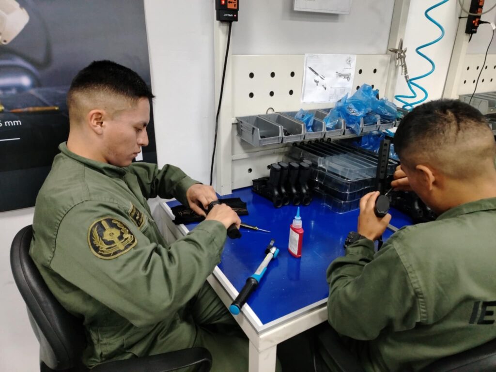 Esta experiencia les permite aplicar sus conocimientos teóricos en un entorno real de producción y mantenimiento, lo que contribuye significativamente a consolidar su preparación profesional. Durante esta etapa, los futuros técnicos participan activamente en procesos de conservación, reparación y verificación de armamento, fortaleciendo sus competencias para garantizar la operatividad del material bélico en futuras misiones.