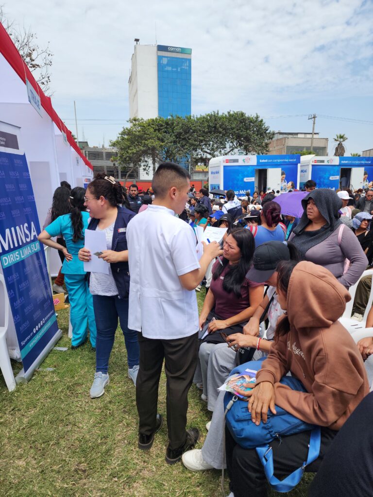 los alumnos del tercer año de la Escuela Técnica del Ejército «Sgto 2do Fernando Lores Tenazoa» de la Carrera de Enfermería Técnica, junto a su coordinadora, la TTE S ENF Hayden Salazar Melissa, participaron en la jornada del MINSA Móvil, organizada por la Dirección de Redes Integradas de Salud (DIRIS) Lima Sur, realizada en las instalaciones del Instituto Peruano del Deporte (IPD) del distrito de San Juan de Miraflores.